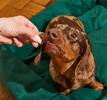 Treats should make up around 10% of your dog’s daily intake. Ours are nutrient-dense and naturally satisfying, so a little goes a long way.