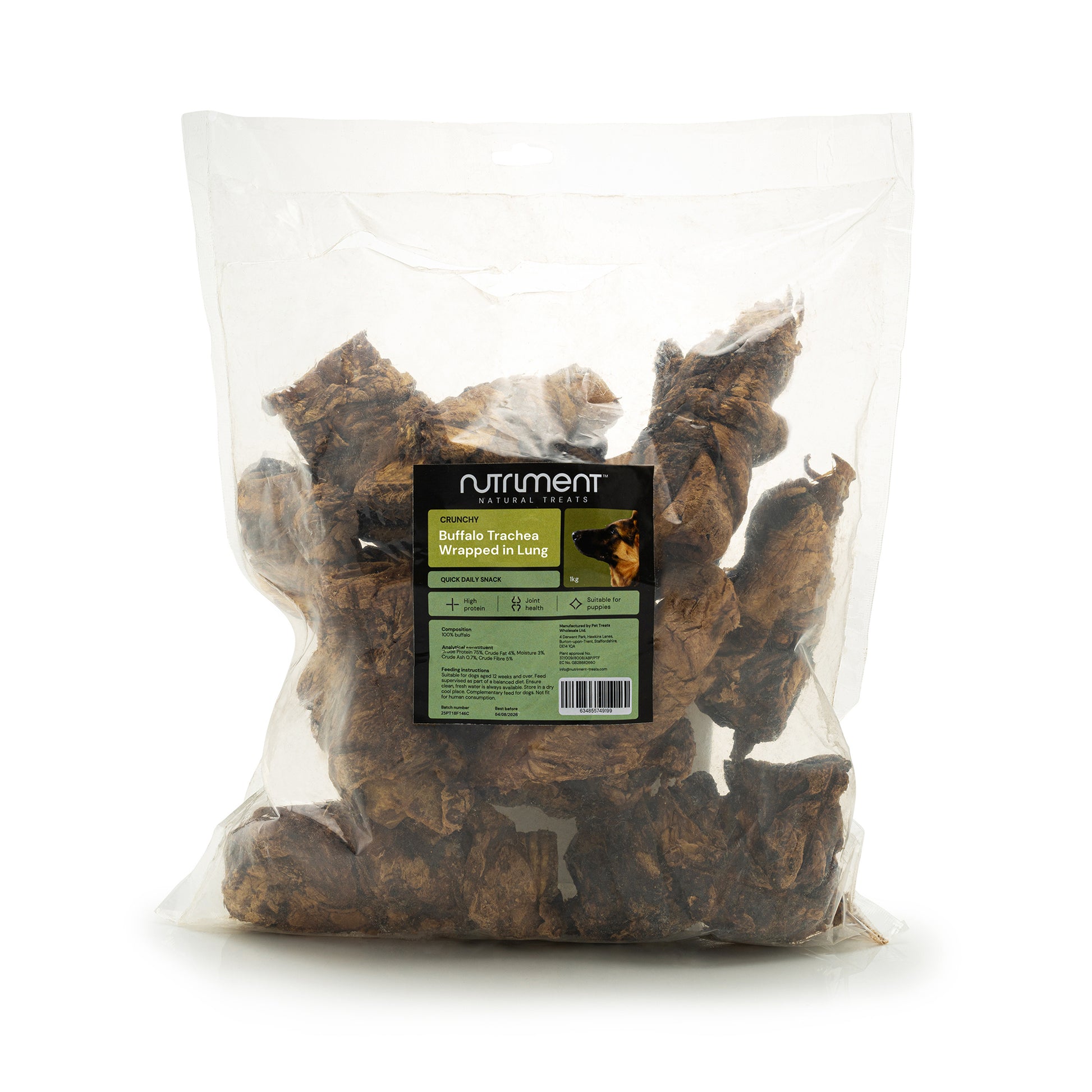 Treat your dog to a natural, long-lasting chew with our Buffalo Trachea Wrapped in Lungs. Made from 100% buffalo, this wholesome treat is packed with high-quality protein and low in fat, making it an ideal choice for health-conscious pet owners. The crunchy trachea provides a satisfying chew that supports dental hygiene, while the lung wrapping adds a burst of flavour dogs love. Naturally air-dried to preserve nutrients without additives or preservatives, this treat is perfect for keeping your dog engaged and happy. A nutritious, delicious reward for dogs of all sizes, crafted for taste and health in every bite.