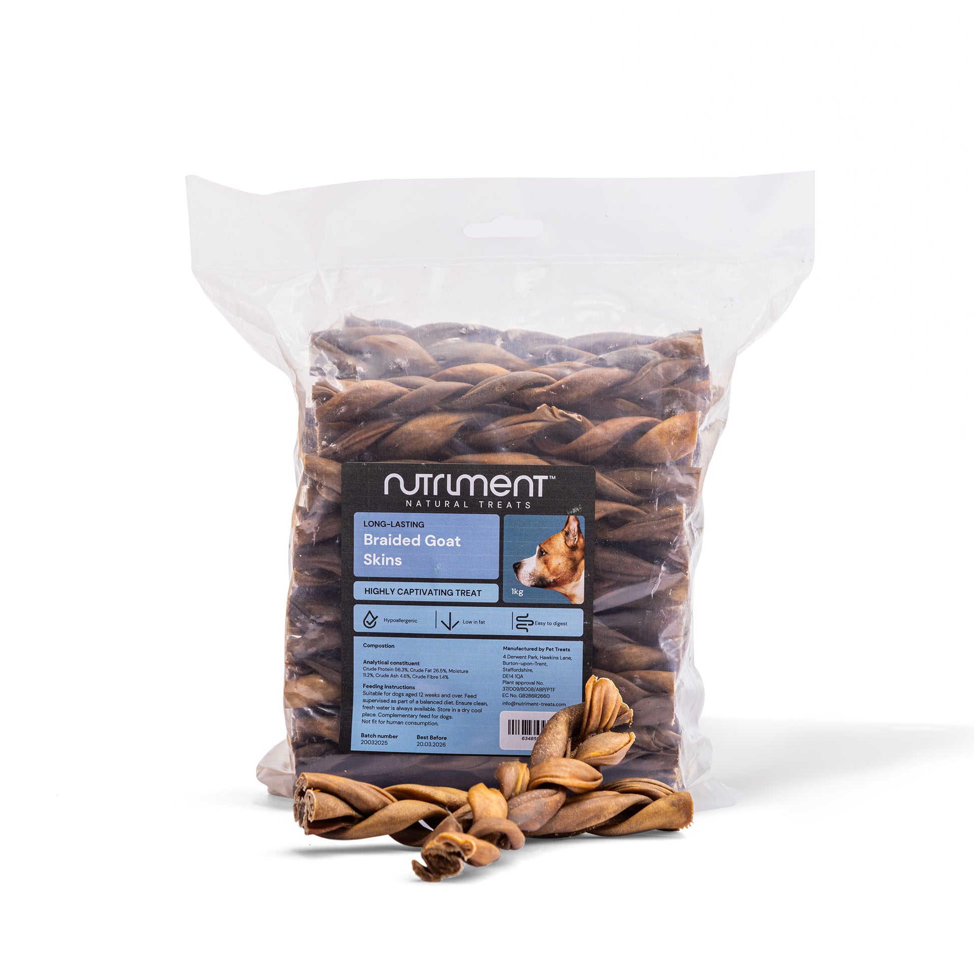 Our Braided Skins are made by braiding together strips of skin to create a durable and long-lasting chew. The braiding process not only adds to the treat's visual appeal but also provides an engaging chewing experience for dogs. Skins are often rich in collagen and protein, offering a satisfying and flavourful option for dogs who enjoy chewing. These treats can help promote dental health by encouraging dogs to gnaw, reducing plaque and tartar buildup.