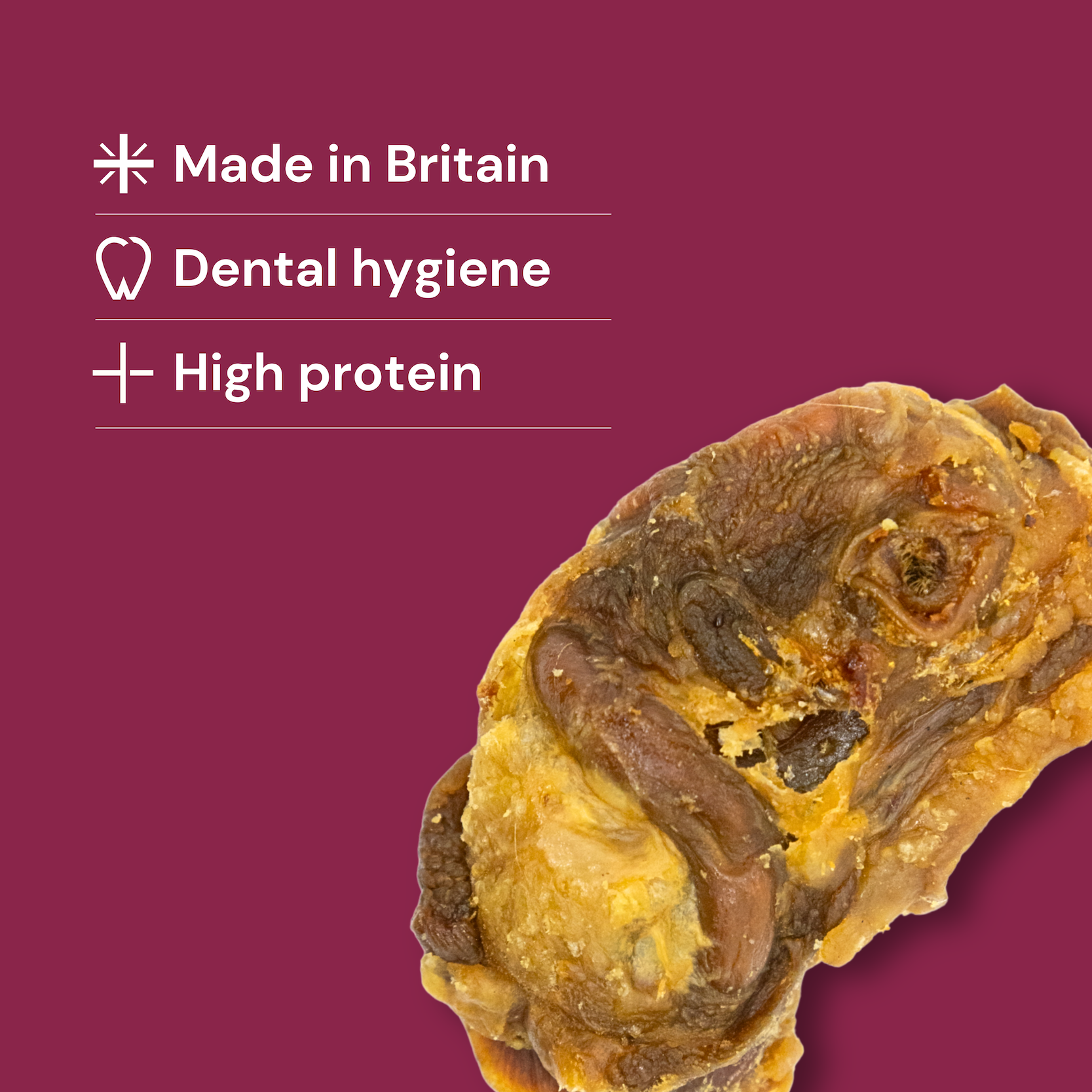 These Pork Bites are a delicious treat made from the inner ear trimmings of our pig ear production, that have been carefully cooked and dried to preserve the natural flavour. They are a great chew for smaller dogs, whilst larger canines will enjoy them as a crunchy snack!